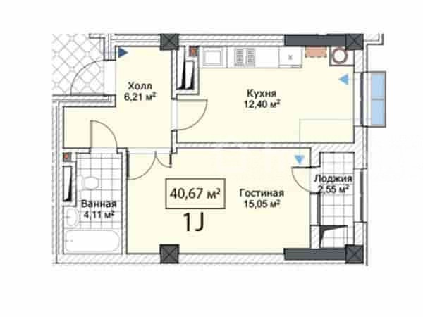 1-комн. кв., 40.67 м2, 7 этаж из 12