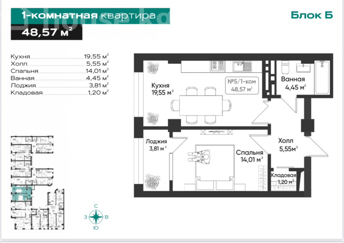Продаётся 1-комнатная квартира. Застройщик: СК Делмар ЖК «Восточный Парк 2». Микрорайон: Тунгуч Этаж: 2 из 16 Площадь: 48,57 м² Отопление: газовое Документы: госрегистр в процессе Цена: 54 000 долларов США Дауд ID: 76164