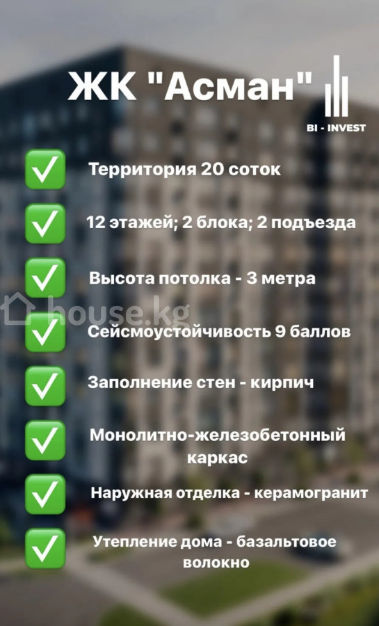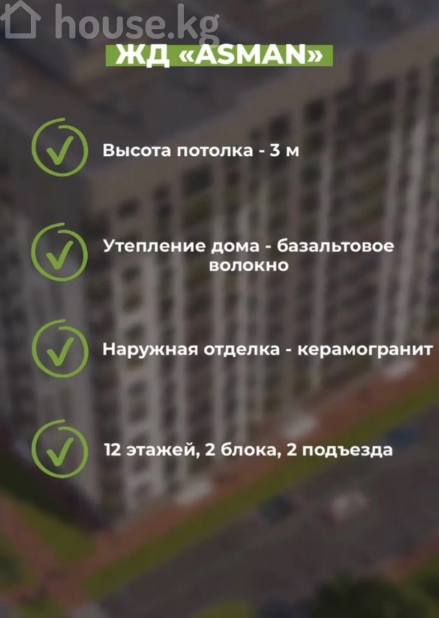 Моналитно каркасный дом с кирпичным заполнением, с базальтовым утеплением. Квартира отличной планировкой. Детские площадки (workout), оборудованные современными игровыми комплексами. Чистый воздух, безопасност, видео наблюдения, подземный паркинг, отличная локация. В радиусе 1 км от дома расположены школы и детские сады, мечет, магазины, салоны красоты, спорт комплекс фэмили спорт, ботанический сад Документы: ДДУ, Красная книга, юридически чистые.
