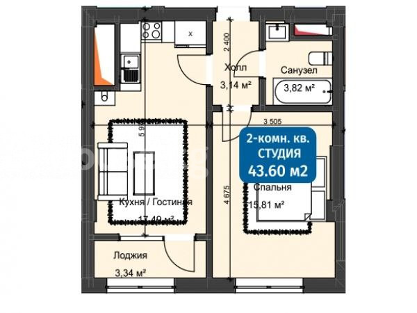 2-комн. кв., 44 м2