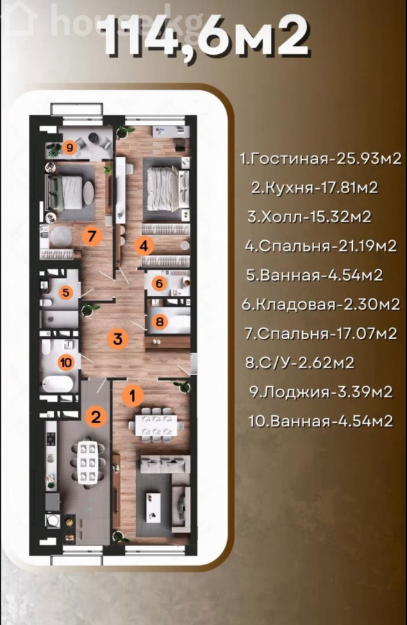 Продается полноценная 3 ком кв. с дизайнерским ремонтом и мебелью. ЖД бизнес-класса «Bright Town” Район Старого Аэропорта (Ажыбек Баатыра 15) Квадратура 114,6м2, удобная и продуманная планировка. Этаж 13 из 14, окна запад - восток с отличным видом Коммуникации центральные, отопление автономное газовое. Дом на красной книге, все разрешительные документы на строительство имеются. Договор долевого участия. ГРС проходит. 2 лифта. Закрытая охраняемая территория. Панорамные окна! Высота потолков 3,6 метра. Сдача в эксплуатацию конец 2025 года. Цена 💲 210 000 Ажыбек Баатыра, 15 / Шота Руставели (район Ак Кеме / старого аэропорта) 2-х подъездный дом на 28 сотках на красной книге с большой дворовой территорией Фасад из клинкера от немецкого производителя Sto Лифты от Otis Алюминиевый профиль с тройным стеклопакетом Премиального качества входные двери от Металюкс (Беларусь) Южно-корейский газовый котёл бренда Navien Шумоизоляция между квартирами (базальт) и под стяжкой пола (пенолон)