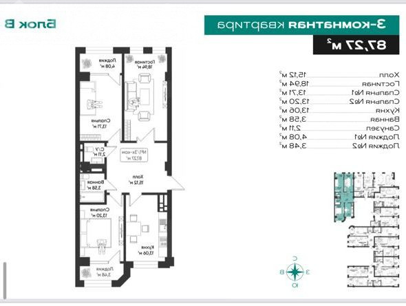 3-комн. кв., 87.27 м2