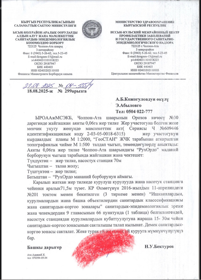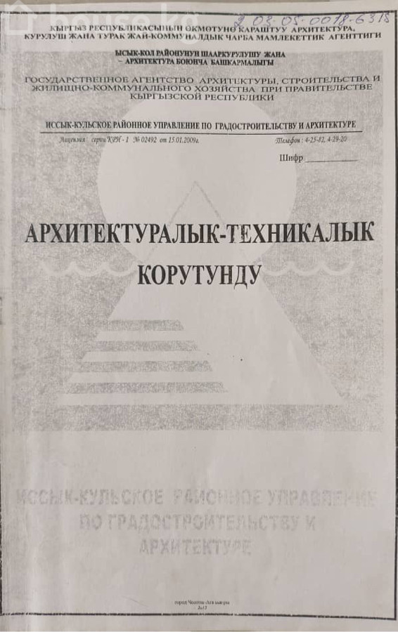 Продается участок (6 соток) в центре г.Чолпон-Ата. В шаговой доступности находятся Центральный парк города, ТЦ «GLOBUS», «ORDO», «KULIKOV», Культурный Центр «Рух Ордо» им. Ч.Айтматова и множество ресторанов и кафе. На земельный участок имеется красная книга, договор купли-продажи. Подготовлен проект и согласован с соответствующими органами, получены АТЗ и разрешение на строительство домов общей площадью 475 м2. Коммуникация: центральный водопровод, канализация, трехфазка до 10 кВт., интернет. Рассмотрим варианты, в том числе продажа/обмен или же возможность совместного строительства данного объекта. Цена: договорная Конт.: 0508 841984 Самат