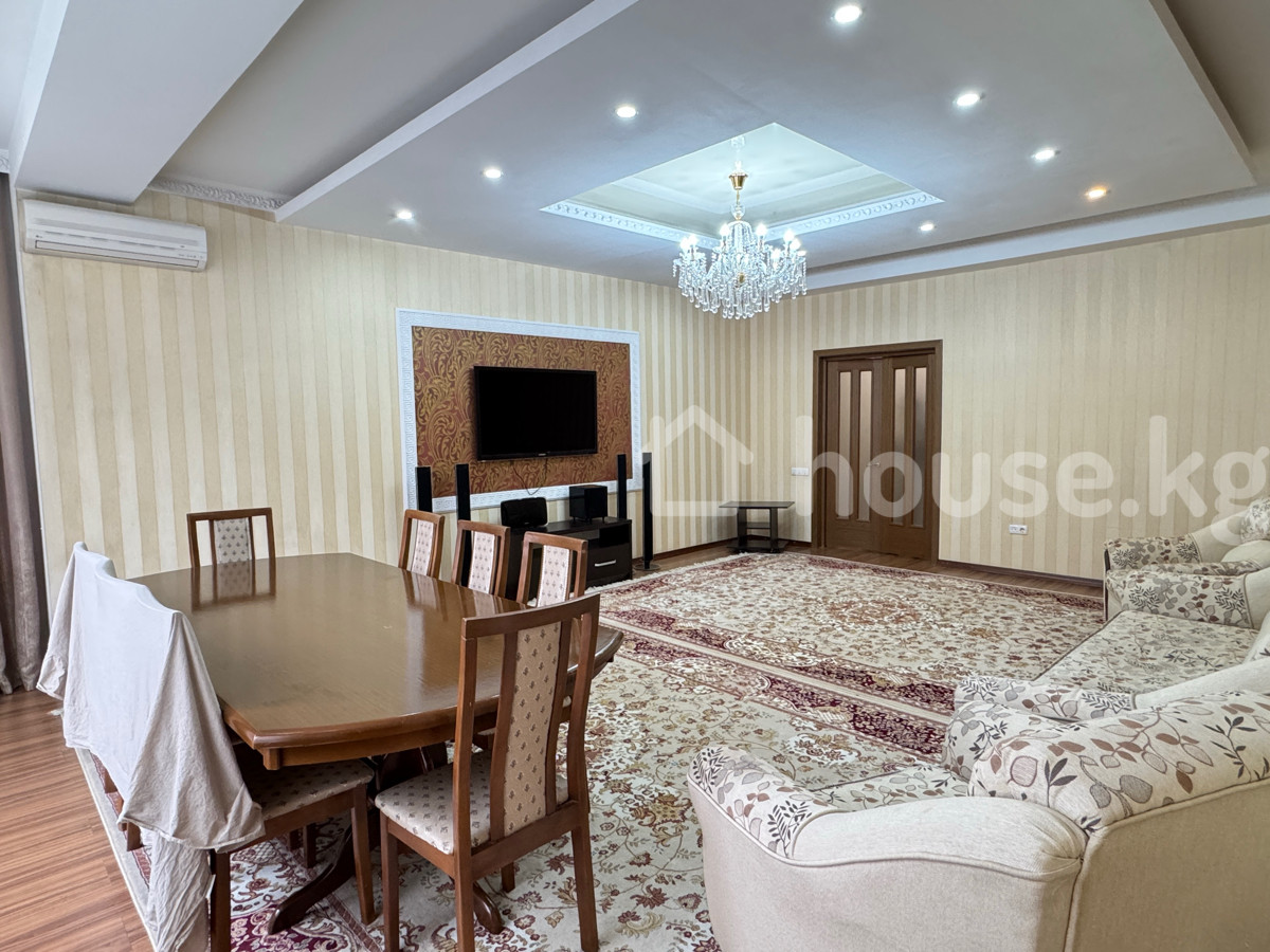 Сдается 4к квартира на долгий срок в Золотом Квадрате Адрес: бульвар Эркиндик д 14 Пересечение: Боконбаева/Эркиндик Этаж: 2/10 Площадь: 170м2 Имеется все не обходимое Центральное отопление Горячая вода, газ Мебель мягкая/встроенная Бытовая техника вся имеется Никогда не сдавалась жили сами, в связи переездом решили сдать На площадке всего две квартиры что дает вам приватность , лучшая локация на сегодняшний день, все в шаговой доступности . Сдаем минимум на пол года с подписанием договора. Цена за месяц: 2300$ Депозит 1000$. 4k long-term apartment for rent in Golden Square Address: 14 Erkindik Boulevard Intersection: Bokonbayeva/Erkindik Floor: 2/10 Area: 170m2 There's everything you need Central heating Hot water, gas Upholstered/built-in furniture All appliances are available Never gave up, lived by themselves, in connection with the move, decided to hand over There are only two apartments on the site, which gives you privacy, the best location today, everything is within walking distance. We rent for at least half a year with the signing of the contract. Price per month: $2300 Deposit $1000.