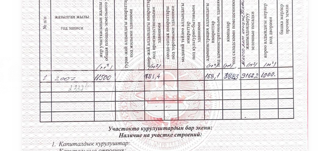 Продаётся земельный участок под производство в г. Каракол Предлагается к продаже земельный участок площадью 1,15 га — идеальное решение для размещения производственной базы, складского комплекса, промышленного объекта или гостиничного бизнеса. На данный момент, назначение пром., но можно поменять под ваши запросы. Характеристики: • Площадь: 1,15 га (11 500 м²) • Артезианская скважина глубиной 200 метров • Собственная подстанция (электроснабжение) • Участок полностью огорожен • Удобные подъездные пути для грузового транспорта • Ровный рельеф, готов к застройке Преимущества: • Готовая инфраструктура для запуска бизнеса • Отличная транспортная доступность • Подходит для производства, логистики, складов Все документы готовы. Быстрый выход на сделку. 📞 Звоните для получения подробной информации и организации просмотра.