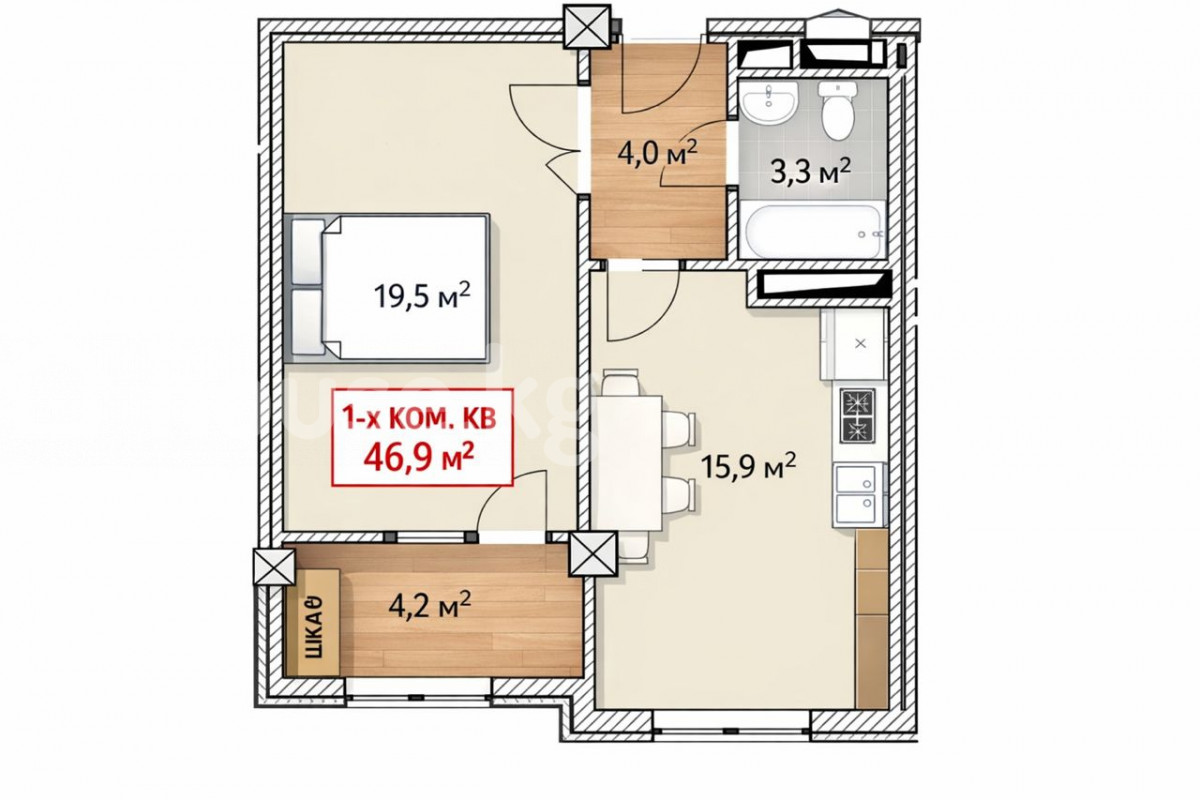 Продажа, 1-комн. кв., элитка, Бишкек, с. Кок-Джар
