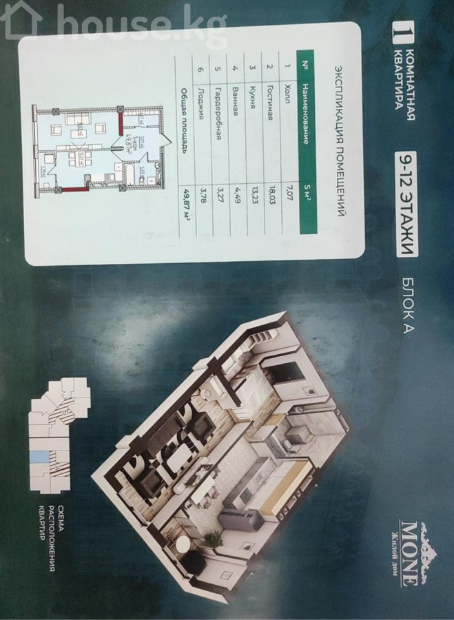 На продаже от СОБСТВЕННИКА 1 КОМН-АЯ КВАРТИРА Застройщик: Muras Building Жилой комплекс : Монэ Район : Нижний Джал. Адрес : Курчатова 31 /Коперника Общая площадь : 50 м2 Этаж : 12 из 13 Коммуникации: Высокие потолки | Газовое отопление | Центральная канализация | Фасад из керамогранита | Документы: ДДУ, Красная книга ПСО через месяц СТОИМОСТЬ : 67.000$ Собственник
