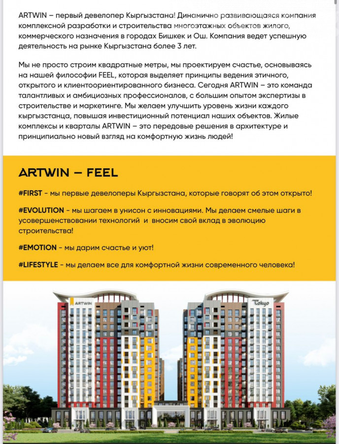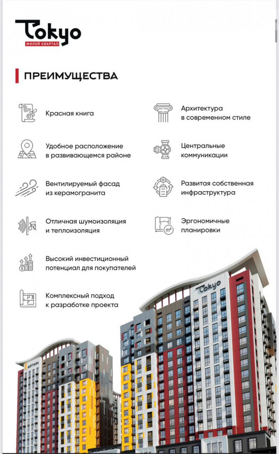 Продаётся кв. 1ком 45.8 квадрат Этаж 6 из 16 ПСО 2026 2 квартал Класс: комфорт плюс Преимущества жилого квартала TOKYO: Удобное расположение в современном развивающемся районе Двухуровневый подземный паркинг Архитектура в современном стиле Вентилируемый фасад из керамогранита Центральные коммуникации (ГВС, ХВС, Газификация, Электричество) Развитая собственная инфраструктура Отличная шумоизоляция и теплоизоляция Эргономичные планировки Уникальные решения, комплексный подход к разработке проекта Высокий инвестиционный потенциал для покупателей Адрес: ул.7-Апреля/ Горького (р/н ТРЦ «Технопарк») Цена: 5 080 000 сом (58 000$) 0707-99-34-99 Айданбек Кыргыз Недвижимость ID: 59262