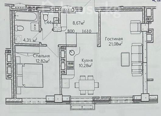2-комн. кв., 58.6 м2, 5 этаж из 14