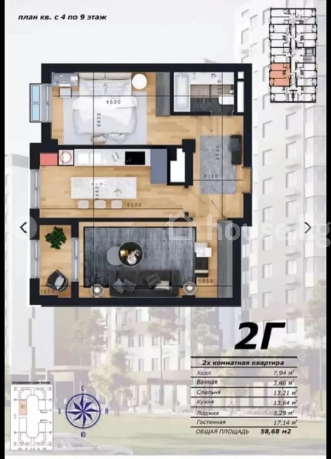 2-комн. кв., 59 м2