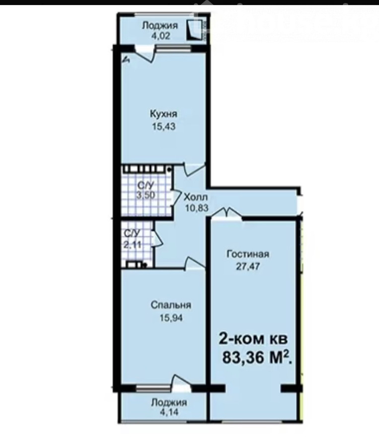 83 м2, жилая: 43 м2, кухня: 15 м2