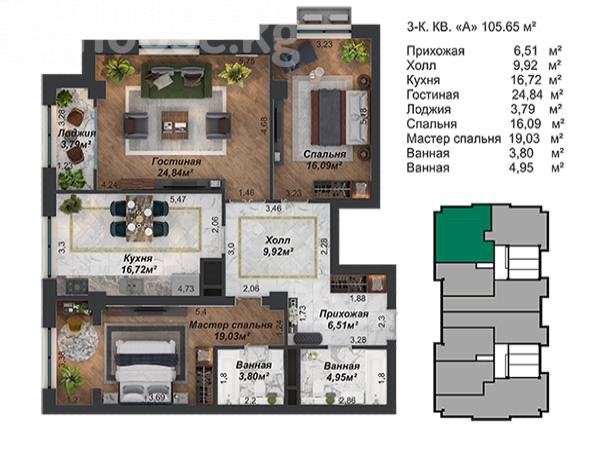 Продажа, 3-комн. кв., элитка, Бишкек, Арча-Бешик ж/м