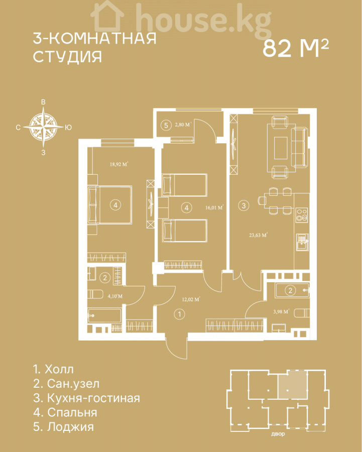 🔥 Последняя квартира в клубном доме! Площадь 82м2, на 2 этаже из 5, сдача под ПСО 4 кв. 2026 года. Цена 2100$ за 1м2. В клубном доме всего на 16 квартир — камерный формат, минимум соседей и максимум комфорта. 🏢 2 этаж из 5 🛠 Сдача под ПСО — уже в 4 квартале 2026г!!! 📄 Красная книга ✨ Преимущества дома: • Закрытый охраняемый двор • Круглогодичная детская игровая зона • Просторный лобби-холл • Собственный маркет на 1 этаже • Своя кофейня • Подземный паркинг • Центральные коммуникации • Автономное газовое отопление 📍 Отличная инфраструктура рядом: • ТРЦ «Ала-Арча» • Парк «Ынтымак» • Школа Oxford International School • Международный университет «Ала-Тоо» • Детские сады в шаговой доступности Идеальный вариант для комфортной семейной жизни или выгодной инвестиции в ликвидную недвижимость. 📩 wa 996500535666