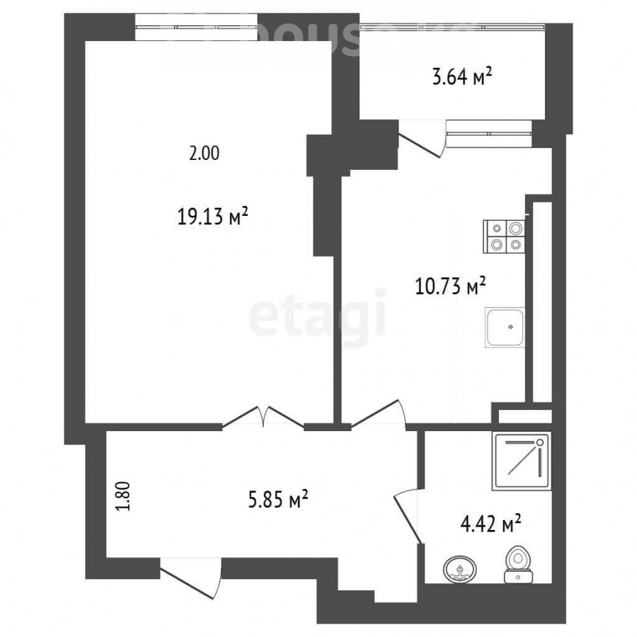 48.23 м2, жилая: 19.53 м2