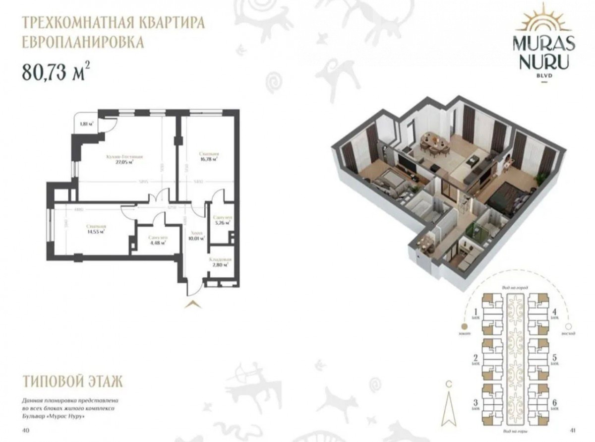 Срочно продам 3к кв 81м² 4эт/12 ЖК Бульвар Мурас Нуру – 99т$ Цена всего 1222$/м², Премиум Класс Строительная компания NURZAMAN 4 этаж из 12 Все коммуникации центральные, отопление – газовое! На данный момент этап строительства – 9 этаж! Рассмотрим вариант обмена на 1к кв либо авто с доплатой! Площадь 81м2 3-х комнатная студия Стены кирпич + базальтовое утепление Окна выходят – Север-Восток Высота потолков 3м Раздельный санузел Сдача ПСО 3 квартал 2027 года Отличная локация, чистый воздух Вне плотной застройки, не муравейник ЖК Премиум класса Территория 5 гектаров 6 блоков, 460 квартир 600 парковочных мест + гостевой паркинг Цена 99т$ + торг Звоните 0703666939 Искендер