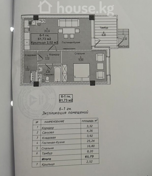 62 м2, жилая: 33 м2, кухня: 25 м2