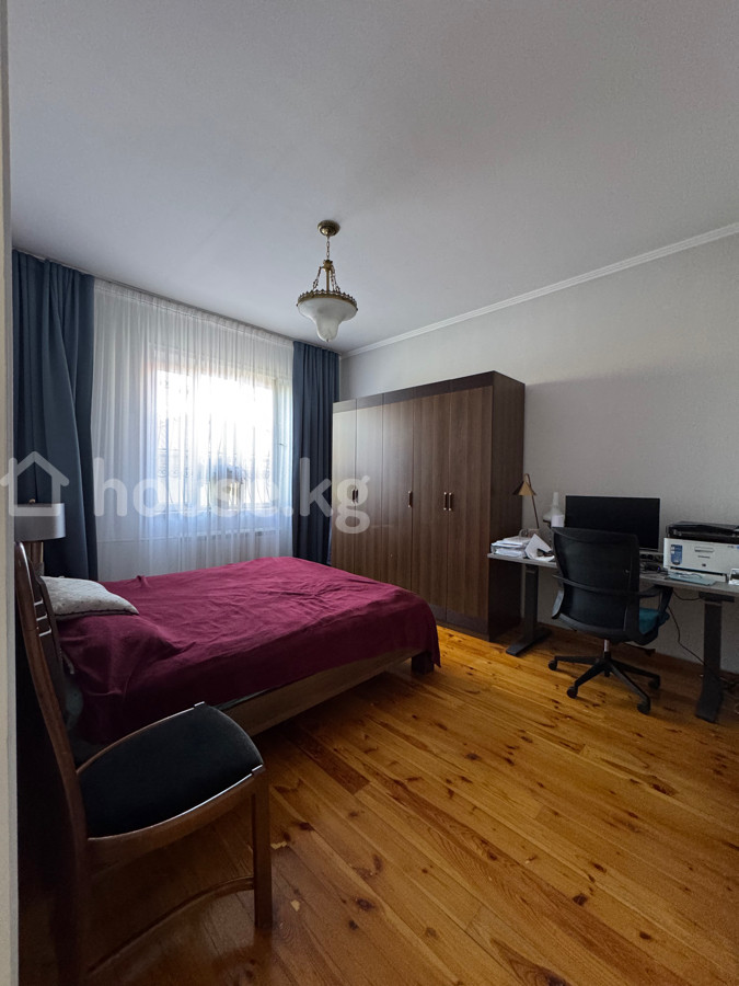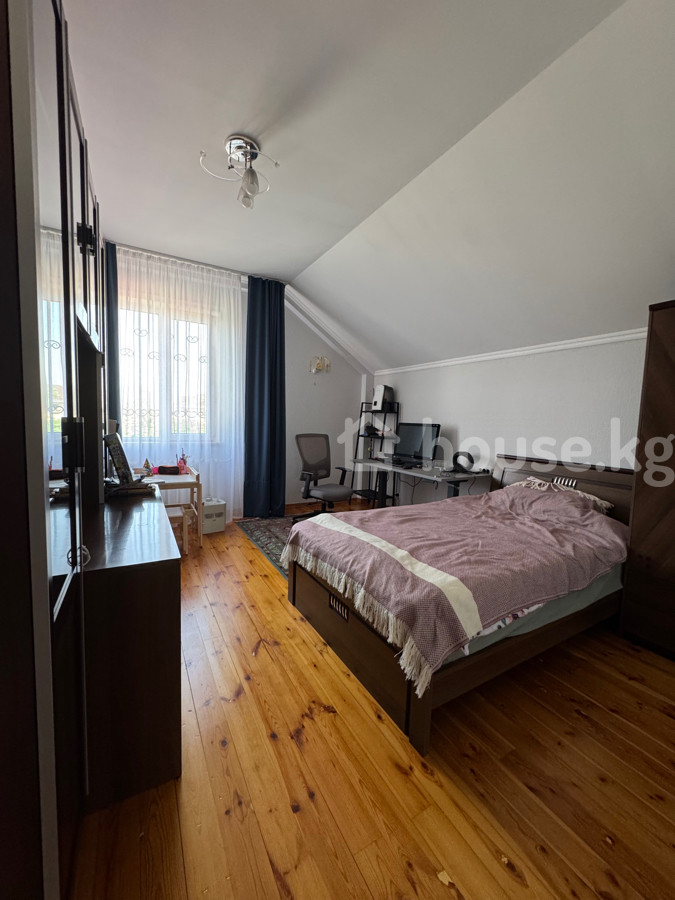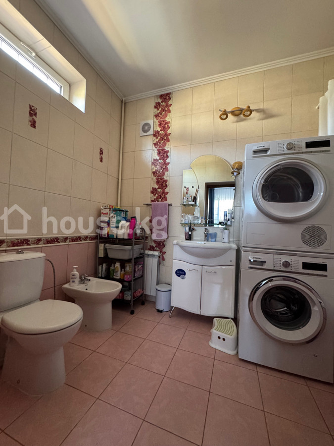 Продаётся добротный дом в экологически чистом районе (Киргизия-1), всего в 1 км от Администрации президента. 📍Участок — 18 соток, ровной прямоугольной формы, красная книга 📍Парковка на 4 авто, зелёные насаждения 📍Центральная канализация, 3-фазное электричество (без ограничений) 📍3 вида отопления: газ, уголь, электричество — установлены 3 котла 📍На участке: баня из липы, бассейн 3×8, летняя кухня, тандыр, плодовый сад, газон 📍2-этажный дом + тёплый цоколь 1 этаж: гостиная, кухня, спальня с санузлом, гостевой с/у 2 этаж: холл, 3 спальни, гардероб, с/у, большой балкон Цоколь: гардероб, кладовая, котельная 📍3 входа в дом, остаётся мебель 📍Дом 2007 г., крыша обновлена в 2019 🔥Подходит под жильё, бизнес, таунхаусы, многоэтажку 🔥Соседние участки (до 40 соток) тоже в продаже Доп. фото — по запросу. Пишите!