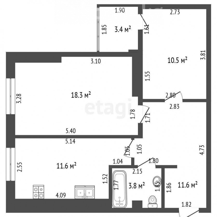 2-бөлм. бат., 60 м2