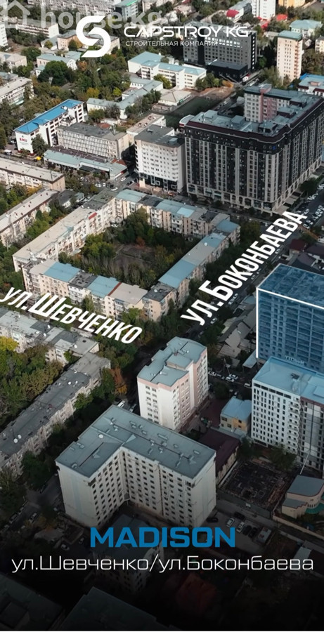 🔥 Продаётся 1-ком в самом центре города 🔥 🏢 ЖК бизнес-класса «Мэдисон» Застройщик — Capstroy KG 📍 Адрес: Шевченко 5 / Боконбаева * Общая площадь — 52 м² * 16 этаж из 16 🏙 О жилом комплексе: * ЖК бизнес-класса * 1–2 этажи — коммерческие помещения (кафе, магазины, сервисы) * Подземный и гостевой паркинг * Закрытая охраняемая территория * Видеонаблюдение 24/7 Цена : 1370$ за м2