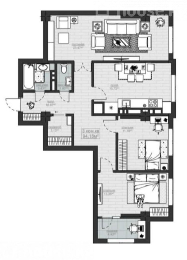 3-комн. кв., 94 м2