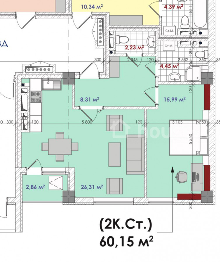 1-комн. кв., 60 м2