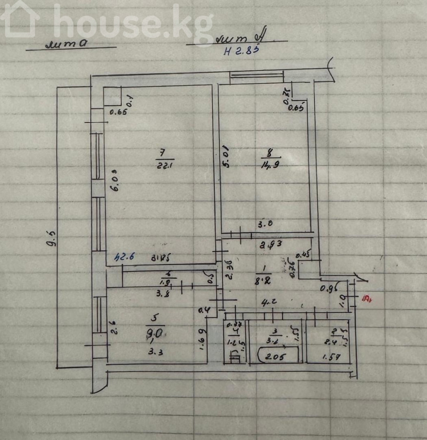 63 м2, кухня: 9.5 м2