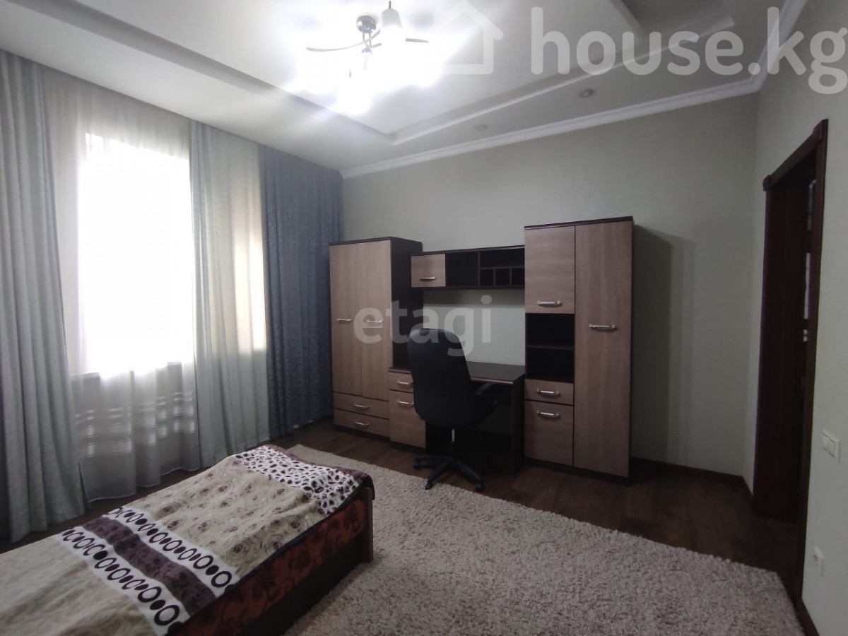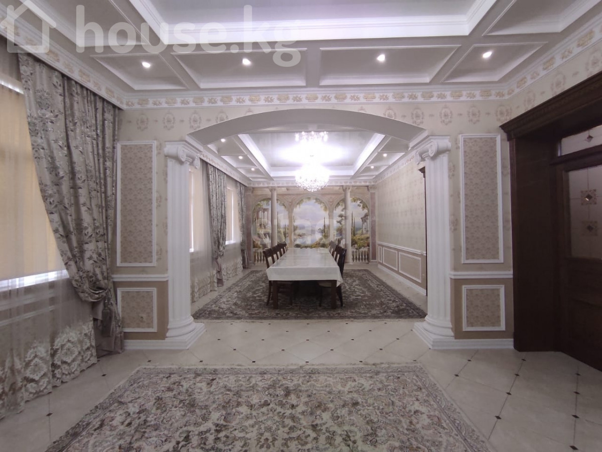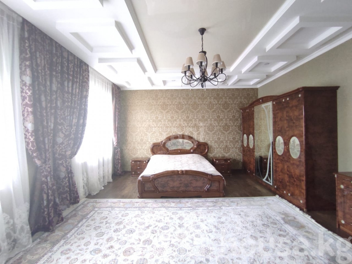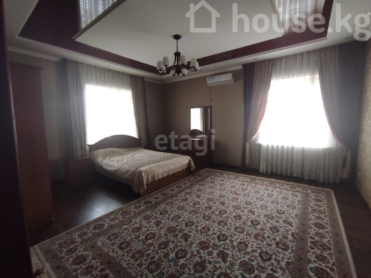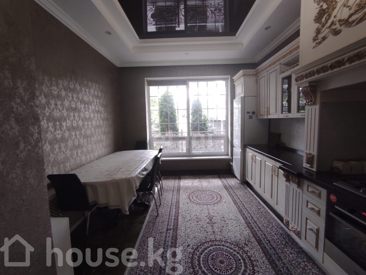 Сдается частный дом в районе Ала-Арча 2, по первой линии (заезд сразу с Байтик Баатыра). На первом этаже: большая прихожая, оборудованная кухня, большая гостиная, гостевая комната и санузел. На втором этаже: 3 спальные комнаты (2 спальни с двухместными кроватями и одна с одноместной), санузел с джакузи и рабочий кабинет. Есть своя парковка перед воротами на 2 машины, стоят автоматические ворота Doorhan, крытая парковка на 3 машины. Во дворе есть небольшая беседка. За парковкой есть: тапчан, казан очог. Подвал: котельная, сауна, душевая, бассейн, небольшая комната, и комната с тренажерами и стиральной машиной. Сдается на долгий срок, иностранцам Доп. описание: отопление: газовое, канализация: центральная, кухонный гарнитур, шкаф-купе, плита, мягкая мебель Номер в базе: 9390818. Район: Аламудунский район
