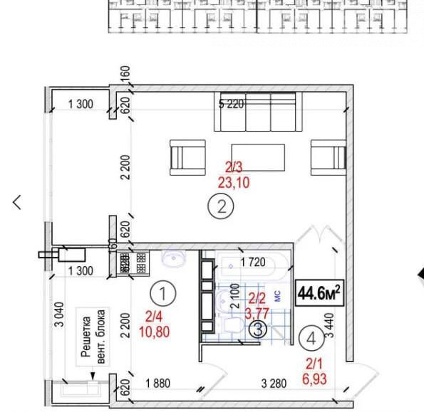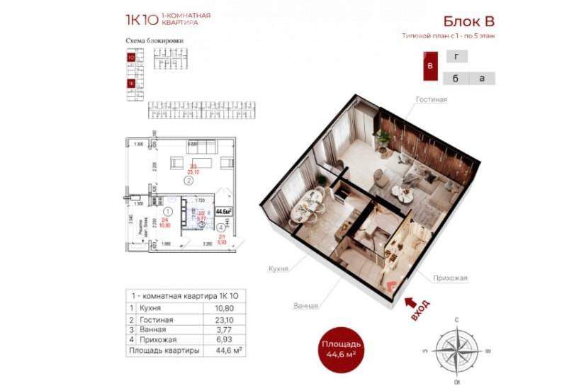 1-room apartment, 45 sq. m