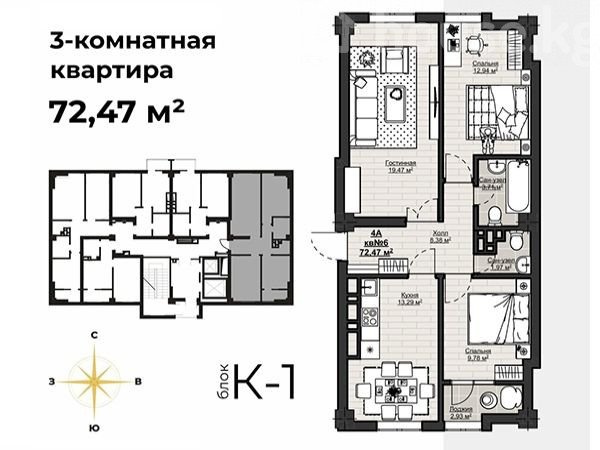 $ 114 097 $ 1 626/м2 9 991 474 сом 142 389 сом/м2