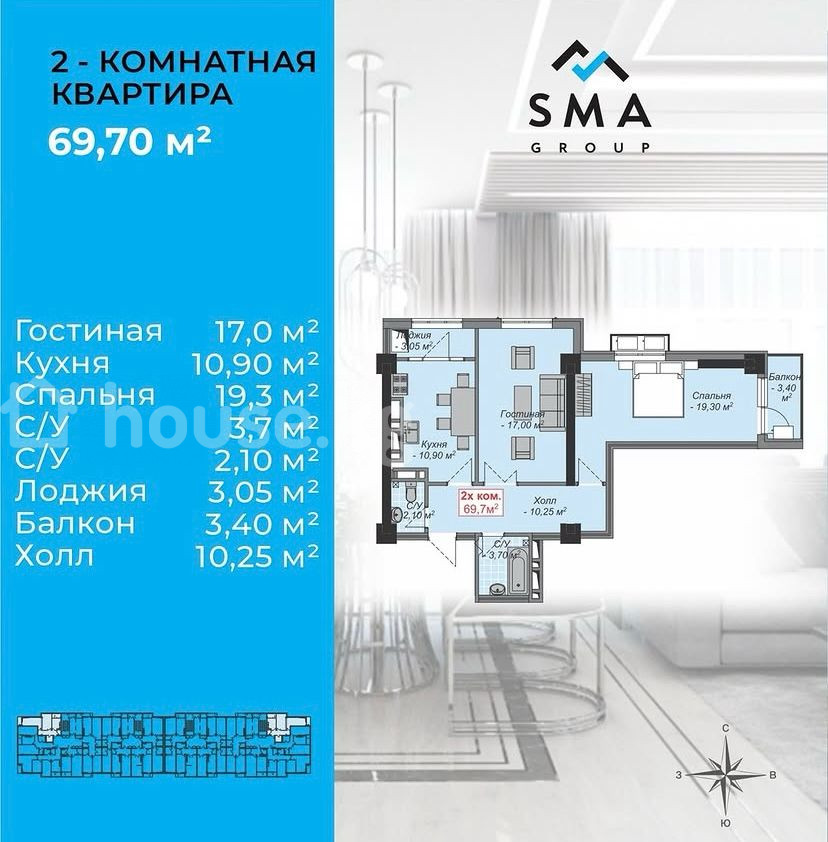 2-комн. кв., 70 м2