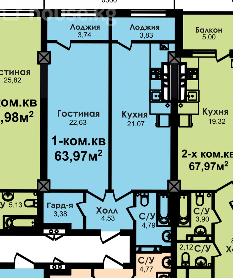 1-комн. кв., 63.97 м2