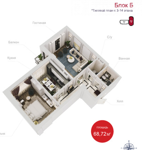 2-комн. кв., 69 м2
