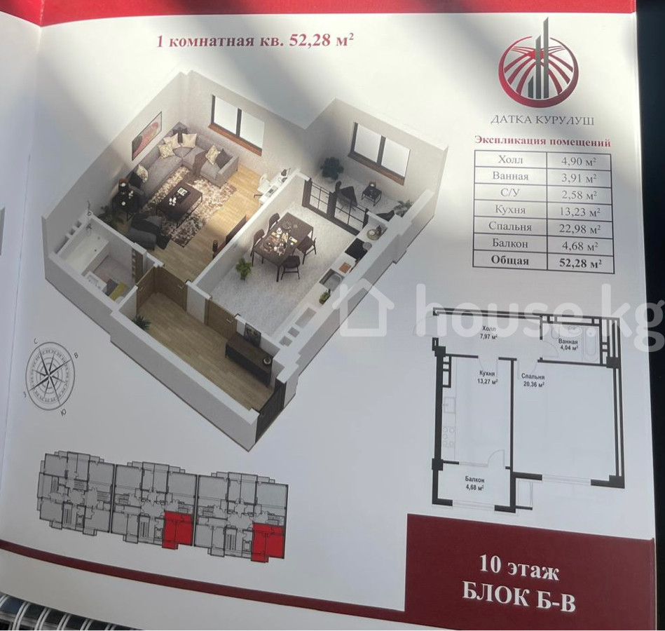 Продается 1-комнатная квартира 📍Адрес: Асанбай 🏗️Застройщик: Датка Курулуш 🏢 Жилой Комплекс: Асанбай Ордо 🏛️Серия: Элитка 🏬Этаж/Этажность: 9/11 📐Площадь: 52.28 м² 💧Коммуникации: свет газ вода ♨️Отопление: газовая 🚪Состояние квартиры: ПСО 🚽Сан узел: Совмещенный 📃Документы: ДДУ 💵 Цена: 1400$