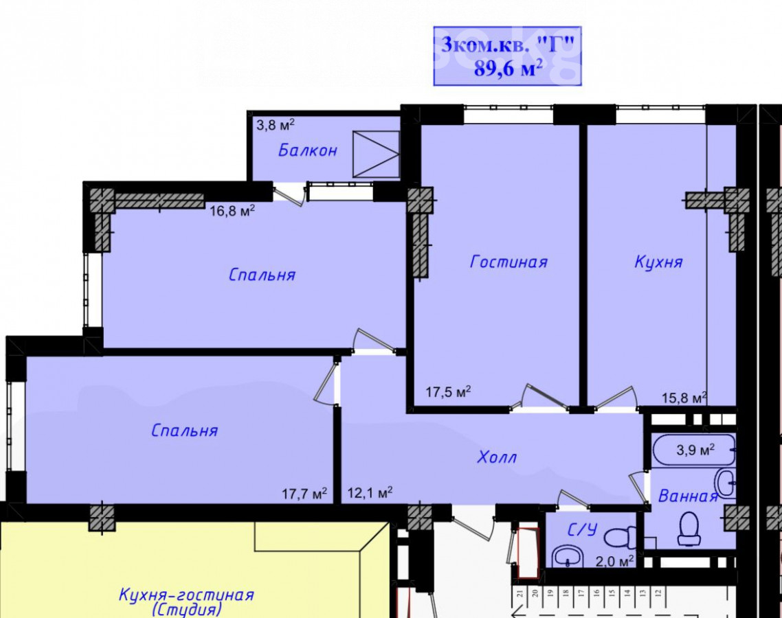 3-комн. кв., 90 м2