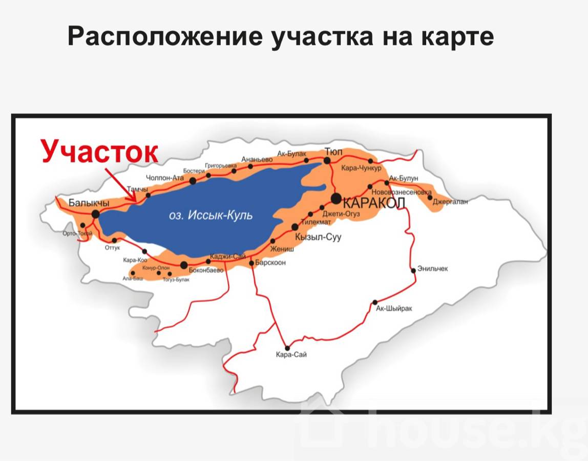 1-я ЛИНИЯ северного берега о.Иссык-куль, 100 метров до озера!!! Продажа участка. Площадь 29,22 Га. Стоимость участка $6 900 000, возможен торг. Продажа участка «Изумрудный берег» под строительство туристического, рекреационного или оздоровительного объекта/отеля/гольф-клуба/коттеджного посёлка…/на территории курортной зоны озера Иссык-Куль, Кыргызская Республика. Расположение участка: Северный берег озера Иссык-Куль, на высоте 1609 метров над уровнем моря. Между селами Кош Коль и Тамчы, * в 8 минутах езды от Международного аэропорта «Иссык-Куль», * в 240 км от столицы Кыргызстан – г.Бишкек, * в 400 км от г.Алматы (Республика Казахстан) Общая площадь участка – 29,22 Га, из которых: 20,0 га – в частной собственности компании («красная книга»), назначение – строительство туристического объекта); 9,22 га – долгосрочная аренда на 49 лет («зеленая книга»), назначение – многолетние насаждения, с/х производство. Между участком и береговой линией озера расположена парко-пляжная зона площадью 2,47 Га, право аренды на которую оформляется с местным органом исполнительной власти на 3 года, с последующей пролонгацией по 5 лет. С участка открывается великолепный вид на снежные хребты Северного Тянь-Шаня. Вдоль границы участка проходит высоковольтная ЛЭП (центральная линия между г.Балыкчы и г.Каракол). Граница участка проходит вдоль трассы «Бишкек-Каракол» (прямой съезд). Участок юридически чистый не обременён никакими обязательствами. Координаты: 42°33'06.1"N 76°37'45.1"E 42.551706, 76.629197, ссылка https://maps.app.goo.gl/zHddHjv8WsnbznBJA Всю информацию вы можете узнать, связавшись по номеру вотсап +996 502402731