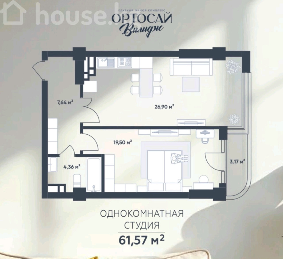 Продается просторная 1 комн квартира, ПСО Квартира находится в идеальном районе, рядом парки, вся инфраструктура ✅ Площадь 61.6 м2 ✅ ЖК Ортосай Виллидж ✅ Застройщик Sobo ✅ 3 этаж ✅ Псо лето 2026г Цена: 94 550 (1550 за м2)