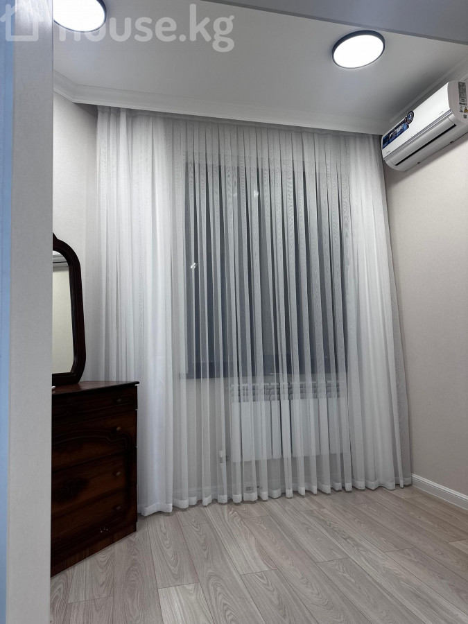 Сдается 3х комнатная квартира ЖК Атмосфера 110квм Отопление назовое Сдается просторная, новая 3-комнатная квартира с современной отделкой, со всеми условиями в чистом, спокойном районе и с хорошей транспортной развязкой. - Планировка: большая гостиная с панорамными окнами, отдельная кухня с обеденной зоной, две спальни; высокие потолки с многоуровневым потолочным решением. Отделка: светлые стены, ламинат под дерево по всей квартире, декоративные плинтуса, _скрытые световые линии и хрустальная центральная люстра в гостиной. Окна: французские/увеличенные, по периметру - легкие тюлевые шторы; установлены радиаторы отопления. Климат: настенный кондиционер в гостиной и спальне Цена 1100+ депозит Аида ID: 72273
