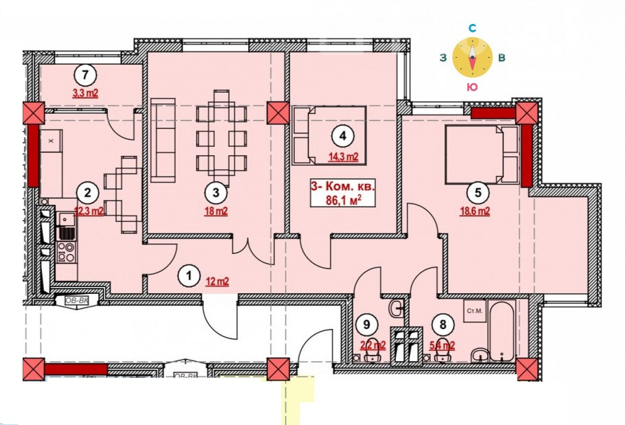 3-комн. кв., 84 м2