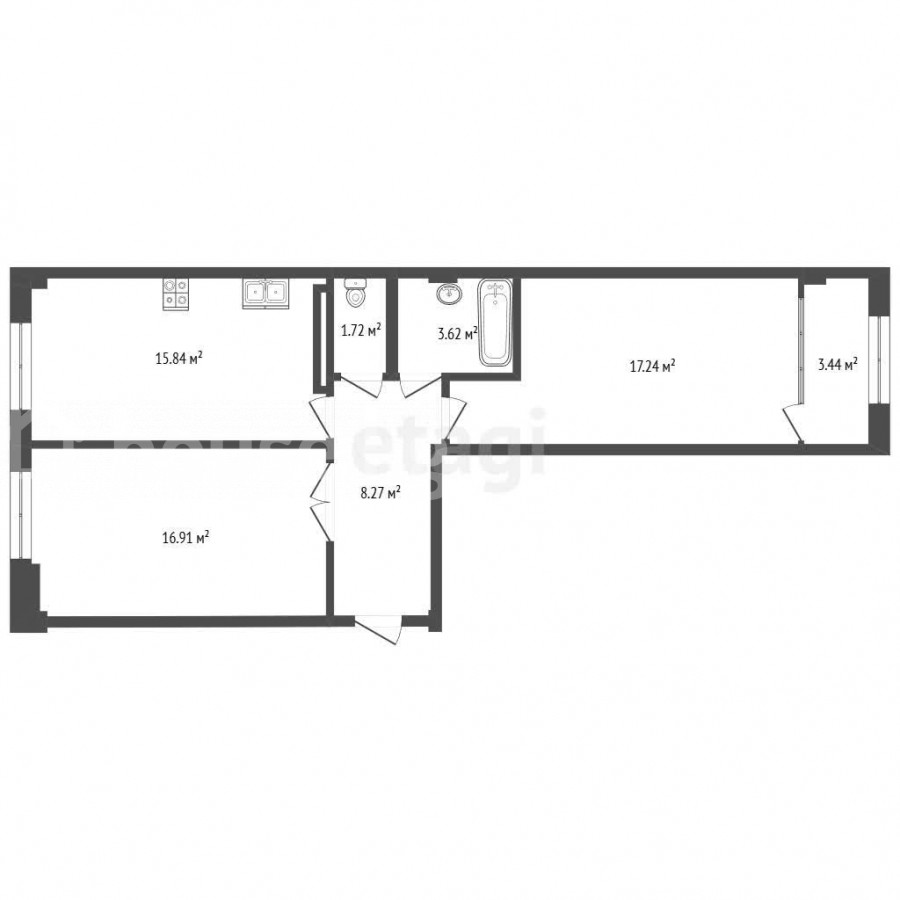 63.62 м2, жилая: 34.15 м2