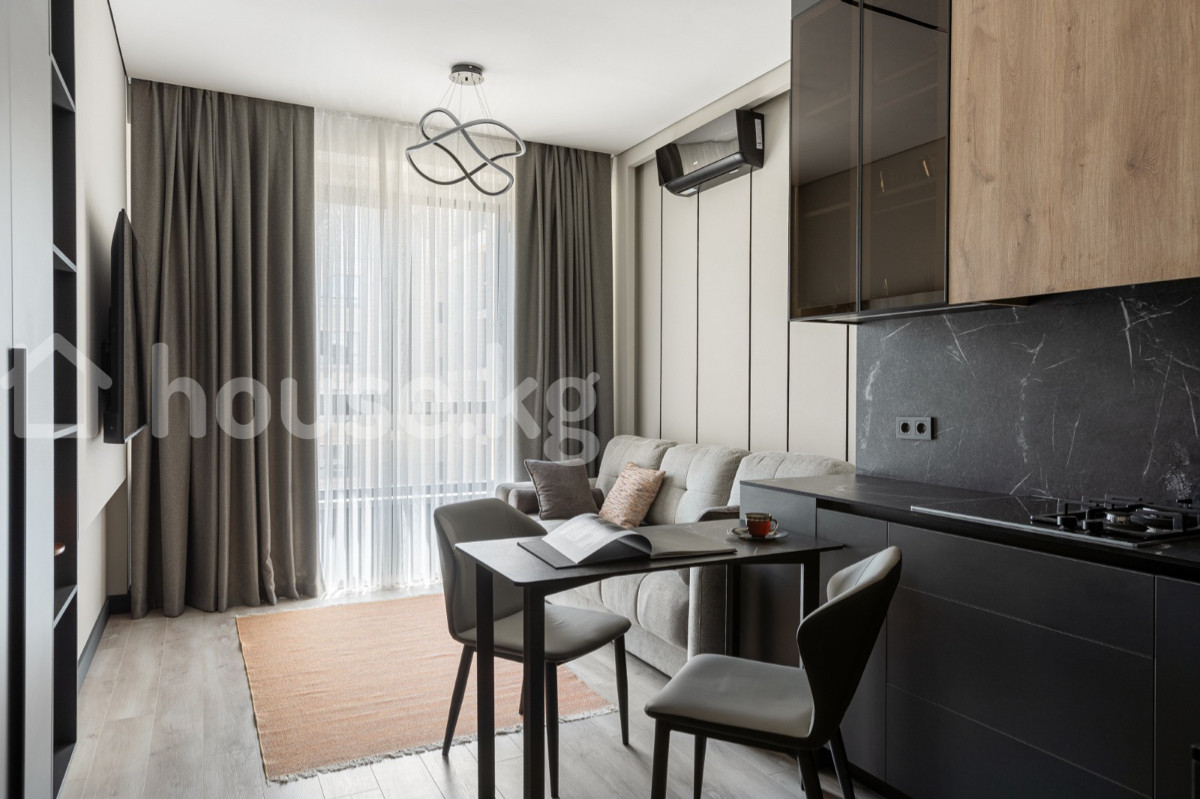 Сдаётся стильная 2-комнатная студия премиум-класса в ЖК «ROYAL» Район Ала-Арча (ул. Ч. Айтматова / Магистраль) Этаж: 12 Вид: панорамные окна с захватывающим видом на горы + Квартира с дизайнерским ремонтом, премиальная локация , выполненным из премиальных материалов. Полностью укомплектована мебелью и техникой: встроенный холодильник, посудомоечная машина, стиральная и сушильная машины, телевизор 65", система контроля протечки воды. Инфраструктура: в шаговой доступности ТЦ «Ала-Арча», парк Бнтымак, школы, магазины, аптеки и рестораны. Та Территория: закрытый двор, видеонаблюдение, детская площадка. • Стоимость аренды: 1100 $ в месяц Депозит: 1100 $ По всем вопросам обращаться по номеру: 0700130707