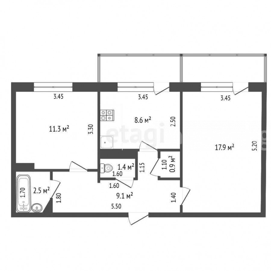 2-комн. кв., 51.7 м2