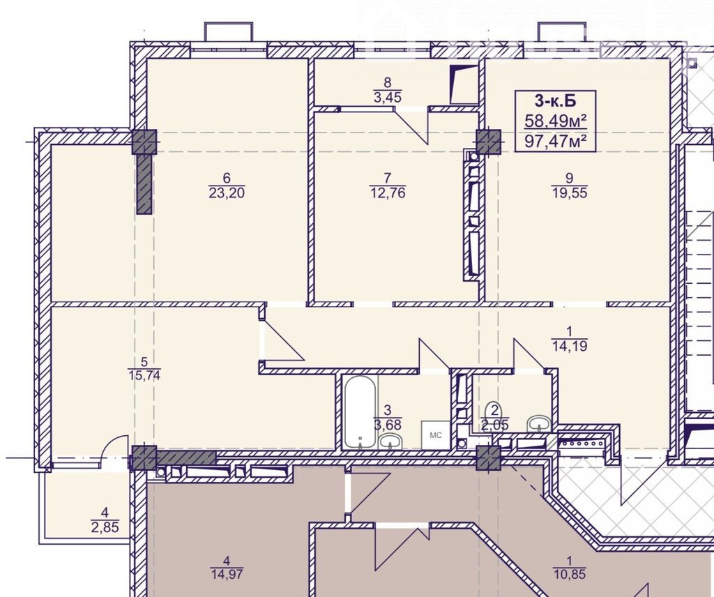 3-комн. кв., 97 м2