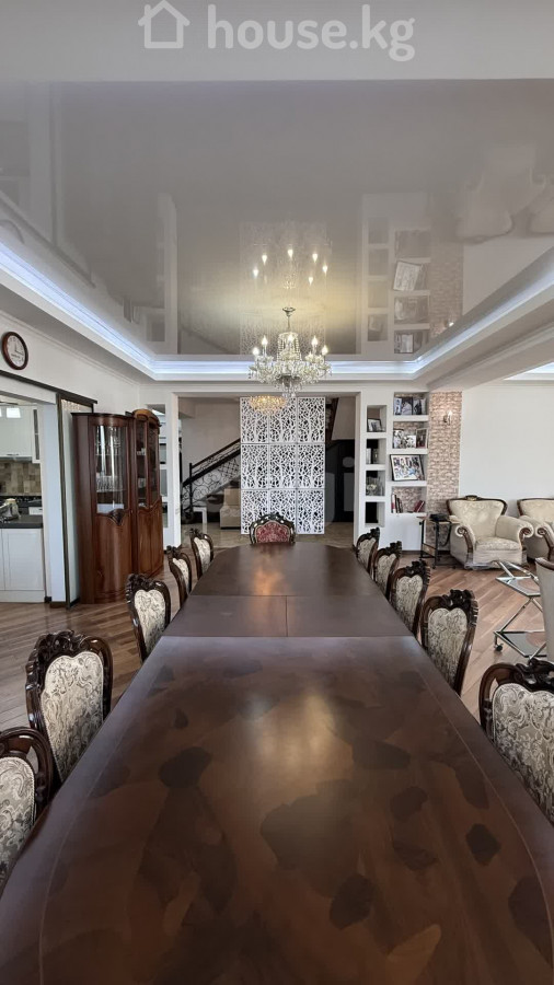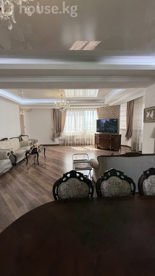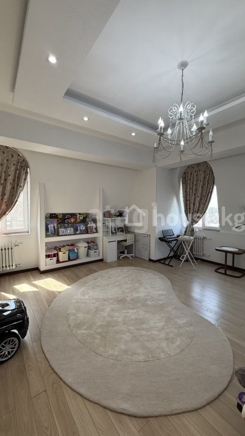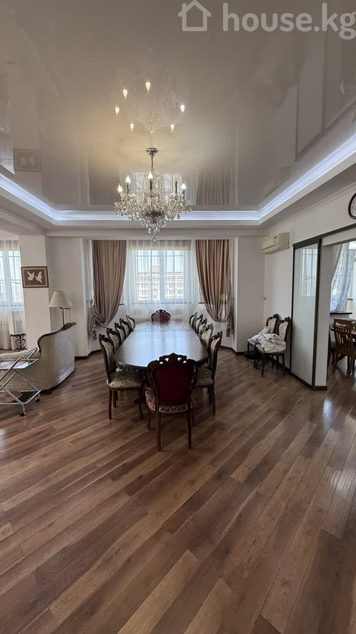 Продается просторный пентхаус в самом центре Бишкека, в районе Филармонии. Квартира с продуманной планировкой: 6 комнат, включая огромный светлый зал с панорамными окнами, выходящими на юг и запад. В наличии 2 мастер-спальни, обеспечивающие комфорт и приватность, а также 4 санузла. Квартира утеплена с внутренней стороны, что обеспечивает дополнительный комфорт в любое время года. Отличный вариант для большой семьи или ценителей пространства. В стоимость входят 3 парковочных места. Престижное расположение и высокий уровень комфорта. Доп. описание: санузел раздельный, пластиковые окна, в доме есть: детская площадка, открытый двор, наземный паркинг, лифт пассажирский, лифт грузовой, ремонт по дизайн-проекту, также имеются: телефон, интернет, кабельное телевидение, счетчики холодной и горячей воды, домофон, железная дверь Номер в базе: 12171490. Район: Первомайский район