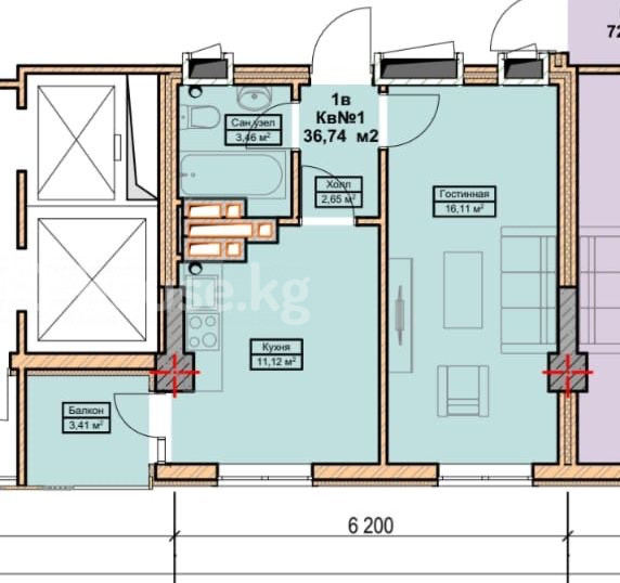 $ 72 000 $ 1 476/м2 6 305 760 сом 129 268 сом/м2
