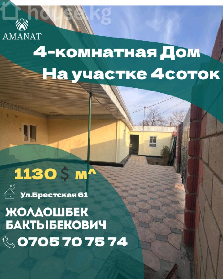 продаётся 4 комнатная комфортный Дом Дом кирпичный ремонт не требуется Преимущества дома: Школа, Гипермаркет,Садик, Детская площадка шаговой доступности на территории: Баня,углярка,Гараж,склад ,туалет . Документы готовы к оформлению По вопросам: 0705 70 75 74 Жолдошбек Бактыбекович Цена: 108000💲 Реальным клиентам Торг