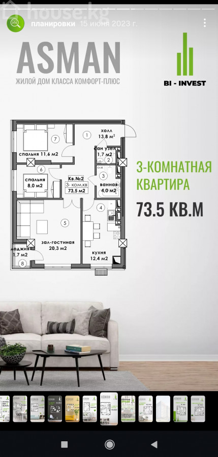 Срочно 92000$ 🏙 3-комнатная квартира на 12 этаже — тишина, свет, обзор Жилой комплекс "Асман" застройщик "Бийктик инвест". Новый дом. Последний этаж, сверху полноценный технический этаж. Правильная планировка. Продаётся уютная 3-комнатная квартира 73,5 м² в комфортном монолитном доме с кирпичным наполнением. Высота потолков — 3 метра. Чистый воздух и простор. 🧭 Окна — на юго-запад. Светлая, тёплая. 📍 Этаж 12-й — последний, без шума соседей, с красивым видом. Планировка: Зал — 22 м² Кухня — 12 м² Спальня — 11 м² Детская — 8 м² Раздельный санузел Технические преимущества: ✔ Газовое отопление ✔ Центральная вода, канализация, электричество ✔ 2 лифта (грузовой и пассажирский) запуск при заселении ✔ Компактный двор ✔ Всего 2 подъезда — мало людей, тихо, чисто Инфраструктура рядом: — школы, детские сады — супермаркеты Globus и Азия — базар Кокжар — пункты выдачи OZON и WB — медцентр — в шаге, 9-поликлиника 📅 Сдан под ПСО Прекрасный вариант для жизни или инвестиций: последние этажи в таких домах — в дефиците. Документы в полном соответствии, проходит регистрацию в госрегистре ДДУ. Дом на красной книге, прилегающий двор на зелёной книге с назначением под строительство многоэтажного жилого дома. --- 📲 Подробности — в личку или WhatsApp ул.Молдокулова 30/2