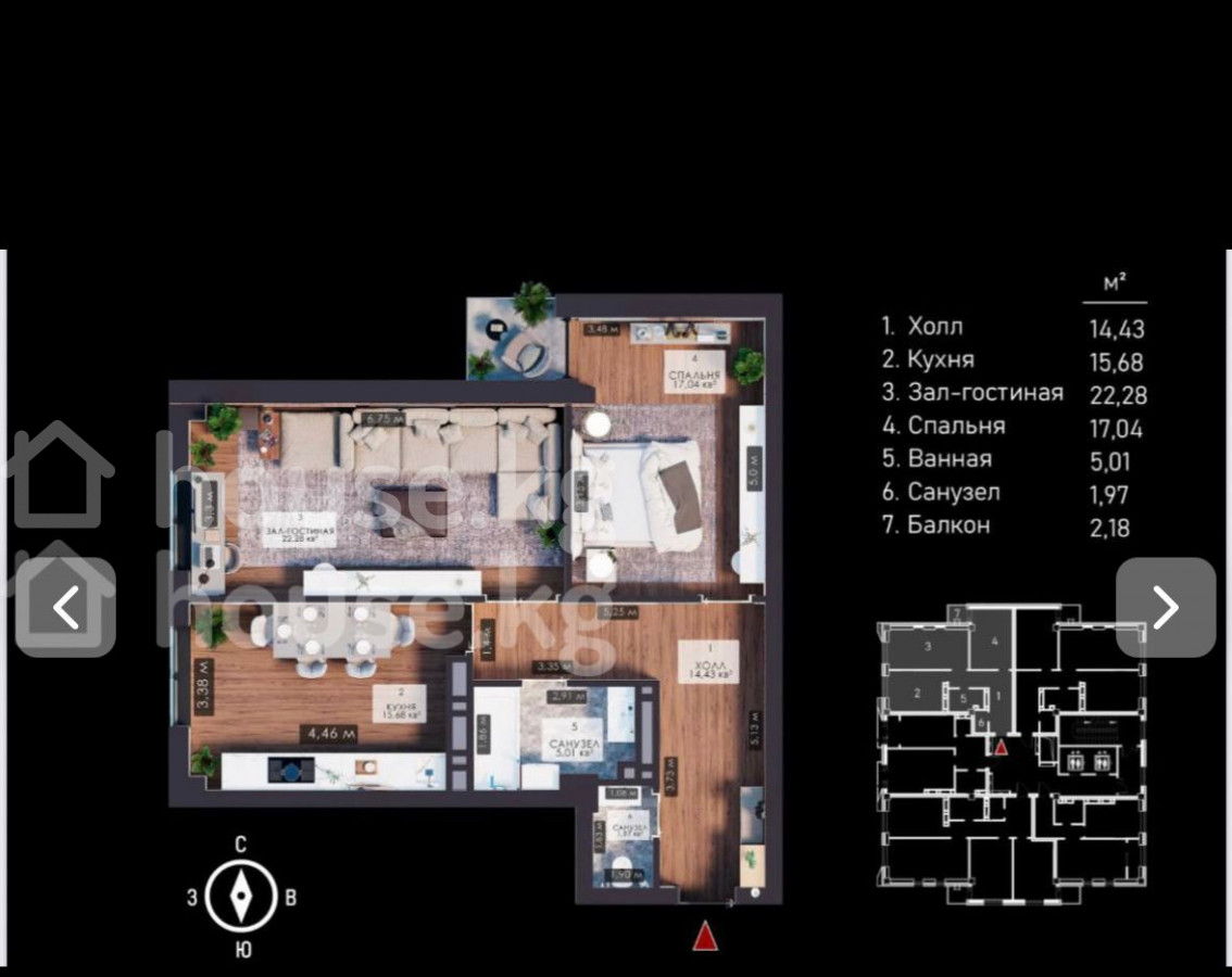 16 этаж из 17