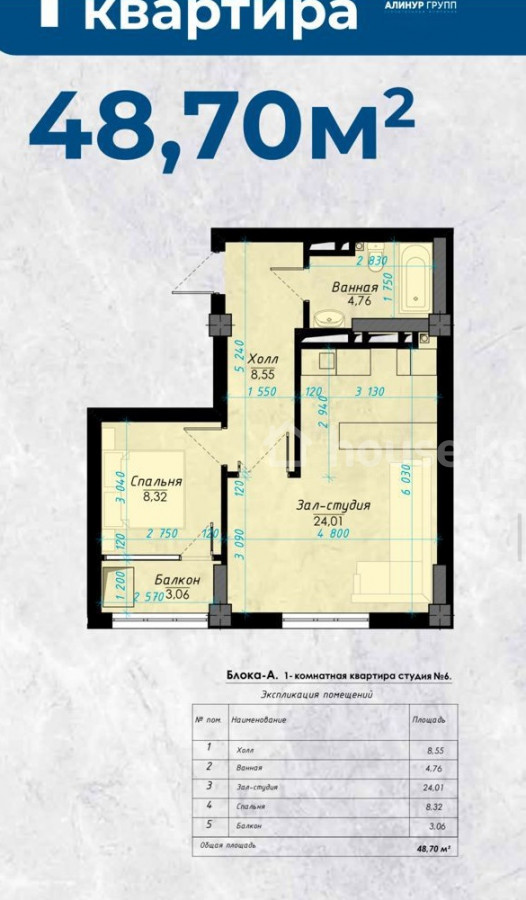 1-комн. кв., 48.7 м2, 10 этаж из 10