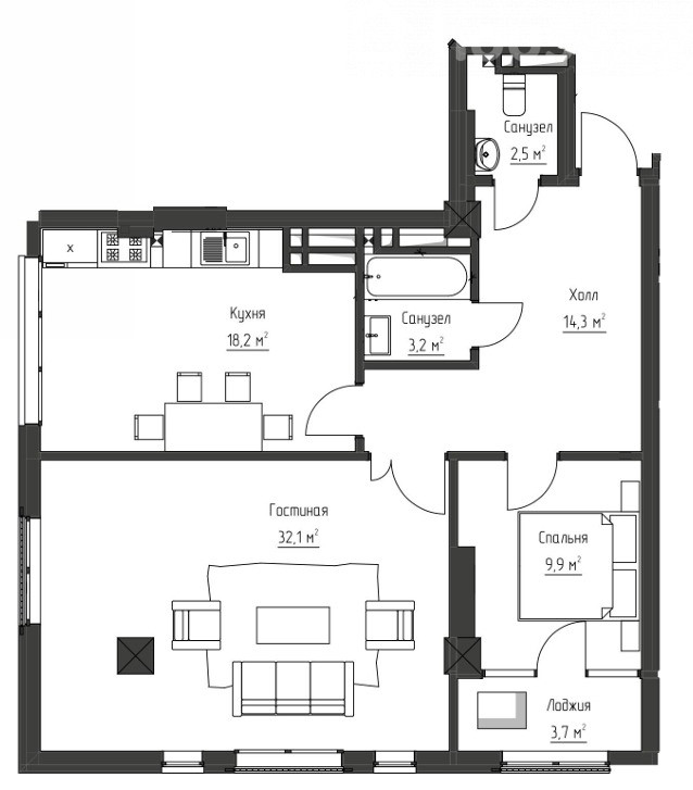 2-комн. кв., 84 м2