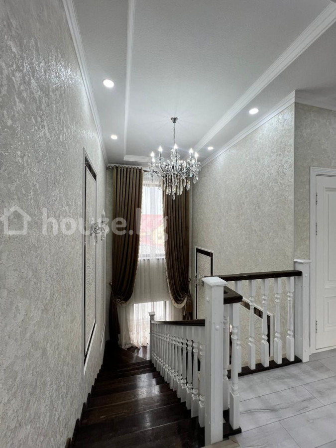 Продаётся просторный двухэтажный дом в классическом стиле с благоустроенным двором 📍 Район: Арча-Бешик, ж/м 📐 Площадь дома: 320 м² 🌿 Площадь участка: 7 соток 🚪 Количество комнат: 8 🔥 Отопление: газовое 💰 Цена: 510000 🔹 Основные особенности: Классическая архитектура с эркерами и панорамными окнами, фасад с декоративными элементами и черепичной крышей. Большая крытая терраса / веранда по фасаду с коваными перилами. Парадный вход с широкими каменными ступенями. Плиточная дорожка от ворот к дому, центральная аллея с ответвлениями к зонам участка. Ухоженный газон, декоративные кустарники и хвойные деревья по обеим сторонам дорожки. Каменная облицовка цоколя и подпорных стен вдоль террасы. Крытая площадка / навес — подходит для парковки, летней кухни или зоны отдыха. Просторный участок с возможностью обустройства детской площадки, сада или барбекю-зоны. Азамат 0706883488 ID: 72320